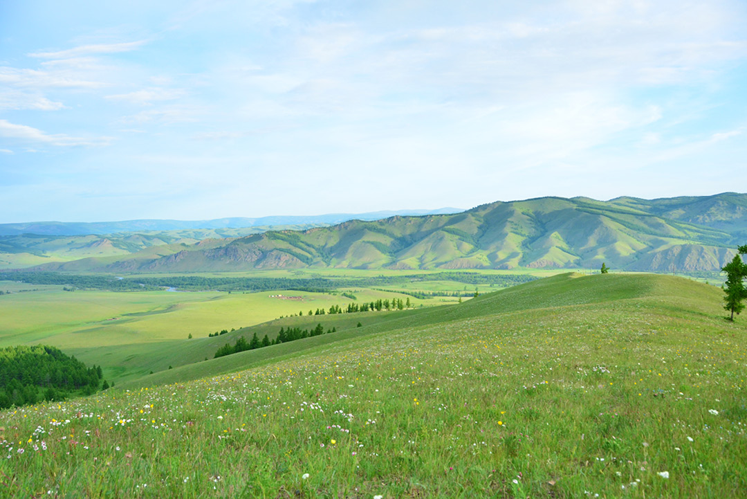 在北方,我们的友邻蒙古国每年夏天将迎来一年一度最美的季节,一望无际的大草原魔法般地变成了花的海洋,清澈的图拉河在附近蜿蜒流淌,一路穿过树林、奔向远山,洁白的蒙古包和成群的牛羊在辽阔的草原上闪闪发光。